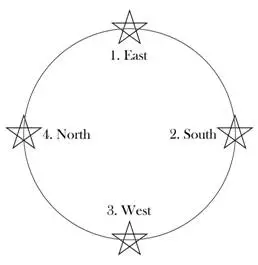 Turn to the North. Draw the invoking or banishing pentagram in the air and vibrate “AH-GELA.”