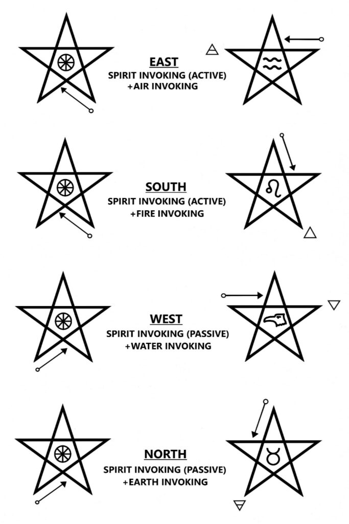 All pentagrams should be visualized vividly in the mind’s eye, fully formed and stable before proceeding to the next step.